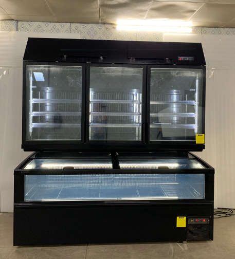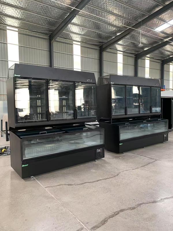 Tủ đông kết hợp màn hình với cửa kính cao và tủ đông hộp đảo - Tủ lạnh thương mại nối nối tiết kiệm không gian